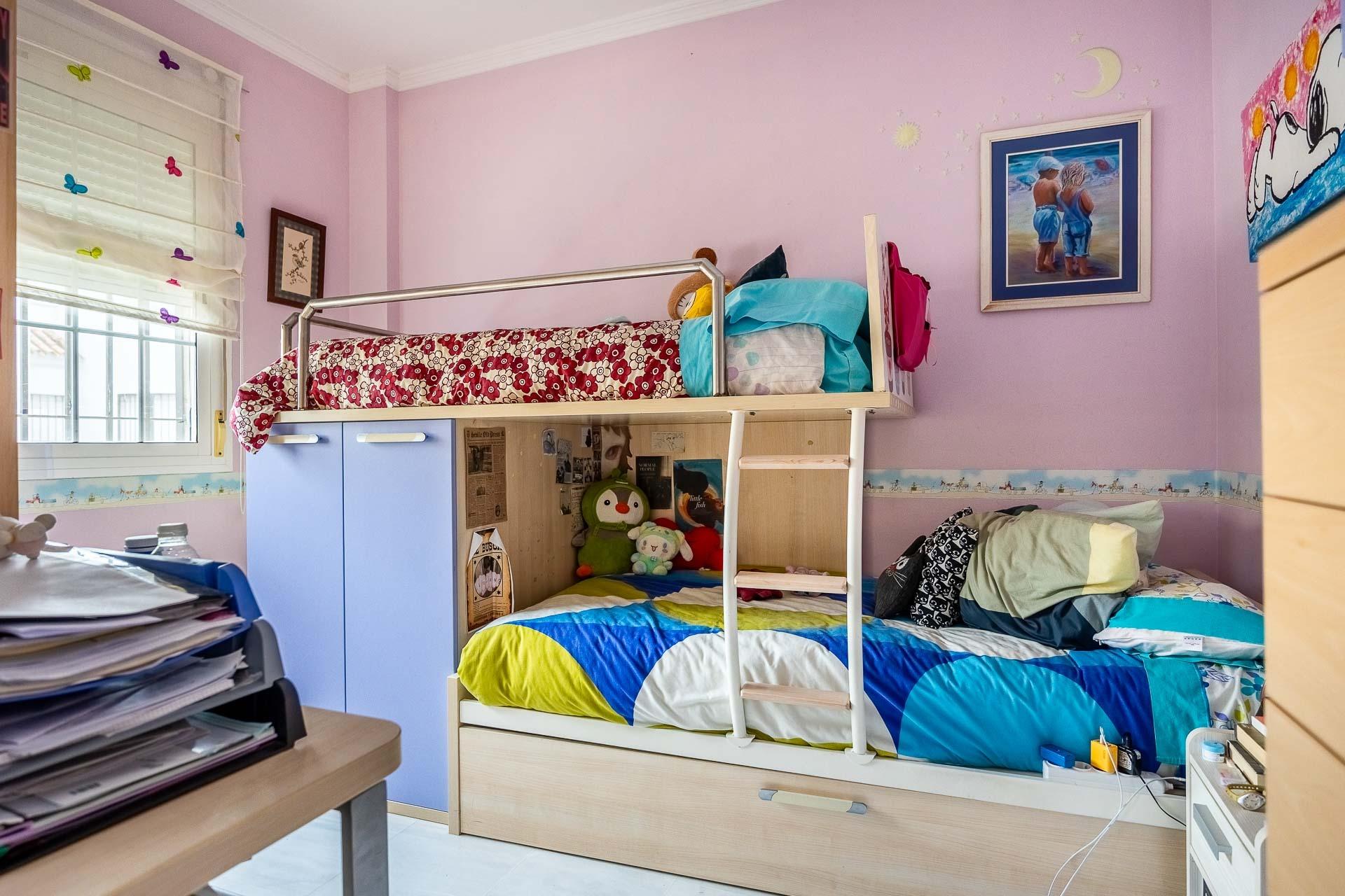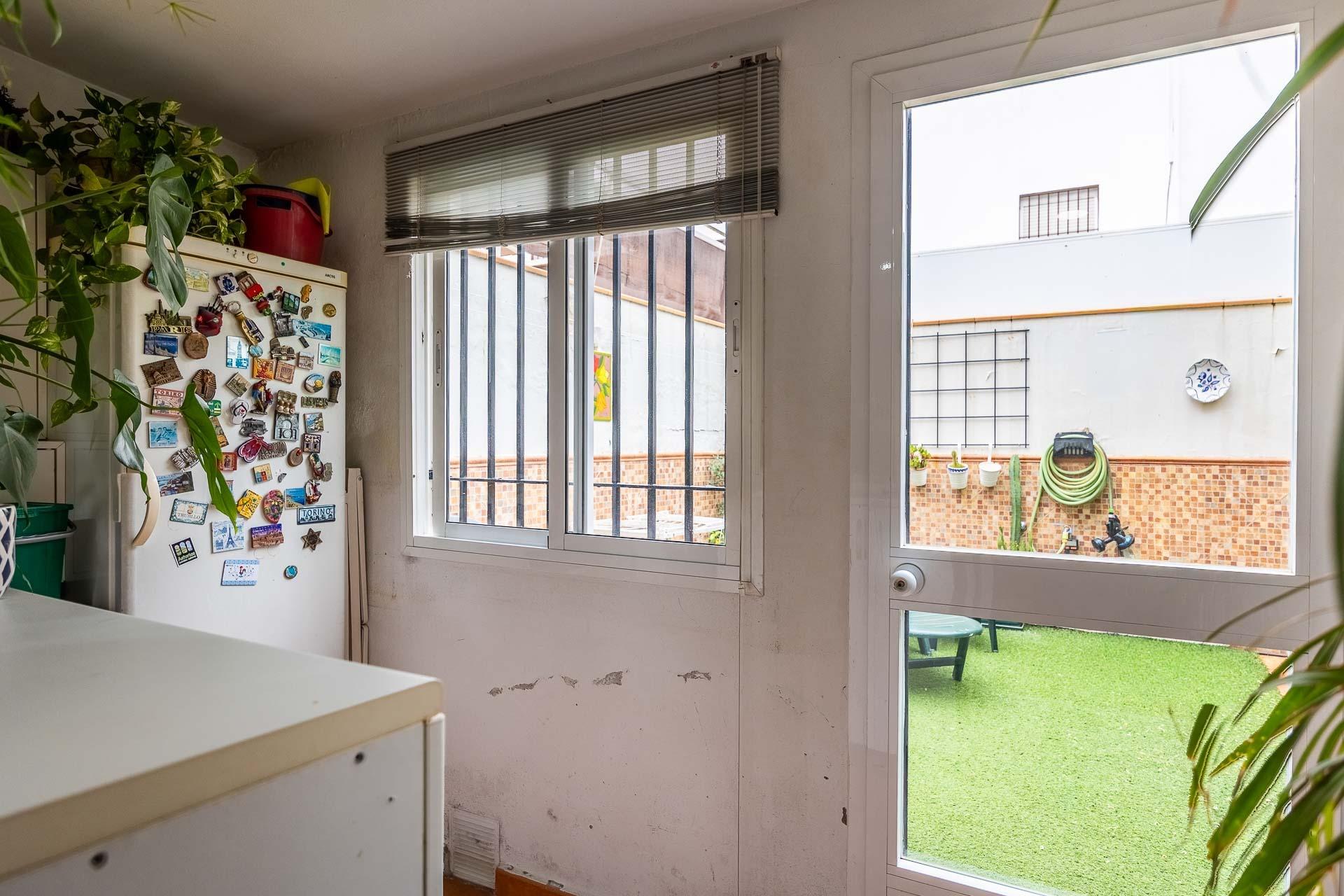 Planta Baja: Al ser una vivienda de esquina, la luz natural inunda cada rincón. Dispone de un dormitorio en planta baja, fundamental para invitados o personas con movilidad reducida. Destaca una cocina de grandes dimensiones con acceso directo al patio, conectada de forma fluida con un salón-comedor independiente que también vuelca sus vistas al exterior.